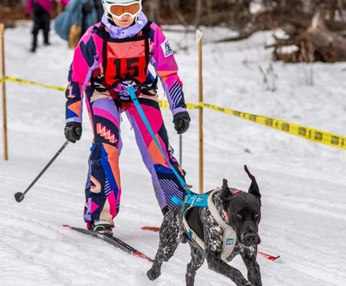 A 2022 offspring of Emmet x Fergus, is affectionately known as a distinguished gentleman with a heart of gold and nose for adventure. He's mastered the fine balance of playful mischief and professional work ethic. He's confidently stepped in to the sport dog world in which he has earned several titles such as hunting (FDJ, WDJ), brush hunt with RATS! Canada (IBRH, NBRH), and can be found competing provincially in various mushing activities like bikejor and skijor.